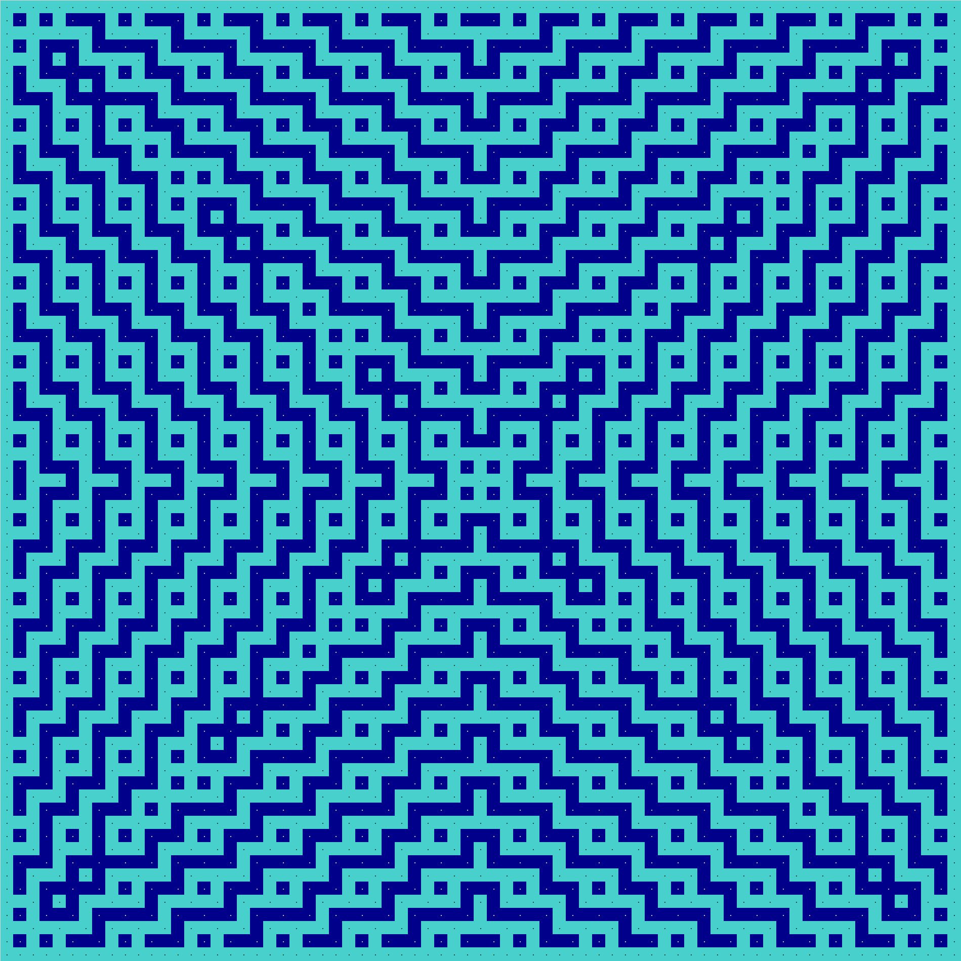 - 40 Square patterns. Each pattern has a chart of the front, back and the reverse versions with colors switched. Every pattern has written instructions for front and back. About 115 pages.